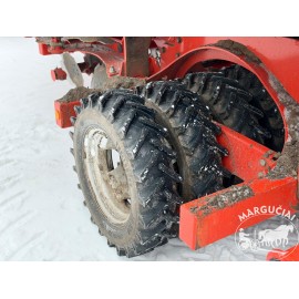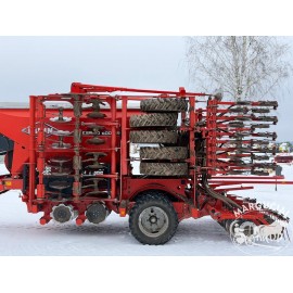 Priekyje diskinis dviejų eilių žemės įdirbimas ir ratinis volas.
