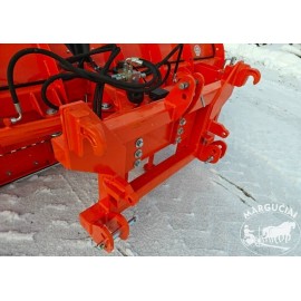 Gaminamas su prikabinimo mechanizmu ant priekinio arba galinio hidraulinio keltuvo, užsakius pagamina prikabinimą pagal Jūsų keltuvą.