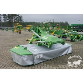 Diskinė šienapjovė PRONAR PDF 301 tai priekinės šienapjovės modelis montuojamas ant priekinio tritaškio pakabinimo mechanizmo. Papildomai aptarnavimui traktoriaus priekyje reikalingas darbinis velenas ir viena pora hidraulinių jungčių. Diskinė šienapjovė PRONAR PDF301 buvo sukonstruota visų pirma galvojant apie darbą sunkiose ir nelygiose vietovėse. Pagrindinis jos elementas yra patikrinta ir patikima PRONAR pjovimo juosta, garantuojanti aukštą pjovimo kokybę. Tvirta mašinos konstrukcija atsirado dėka šiuolaikinių medžiagų ir gamybos technologijų. Kartu su dideliu vietovės kopijavimo diapazonu užtikrina, kad diskinė šienapjovė PRONAR PDF301 susidoros su bet kokiomis sąlygomis ir užtikrins puikią pjovimo kokybę. Pjovimo našumas esant 10 km/h greičiui siekia 3 ha/h. Diskinės šienapjovės PRONAR PDF301 pavarai pakanka 60 AG traktoriaus.