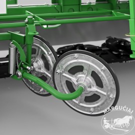 Dvi stiprios palengvinančios spyruoklės reguliuoja pjovimo-plaušinimo mechanizmo spaudimą į pagrindą.