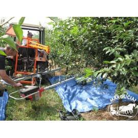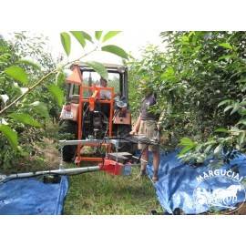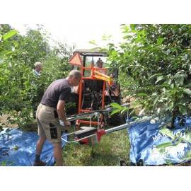 • Dėka galimybės pasukti siją 90 laipsnių į kairę ir į dešinę galima vienu metu rinkti vaisius nuo dviejų medelių eilių. Žinoma tuomet reikės dviejų ekranų komplektų ir papildomai 2 asmenų jų aptarnavimui.